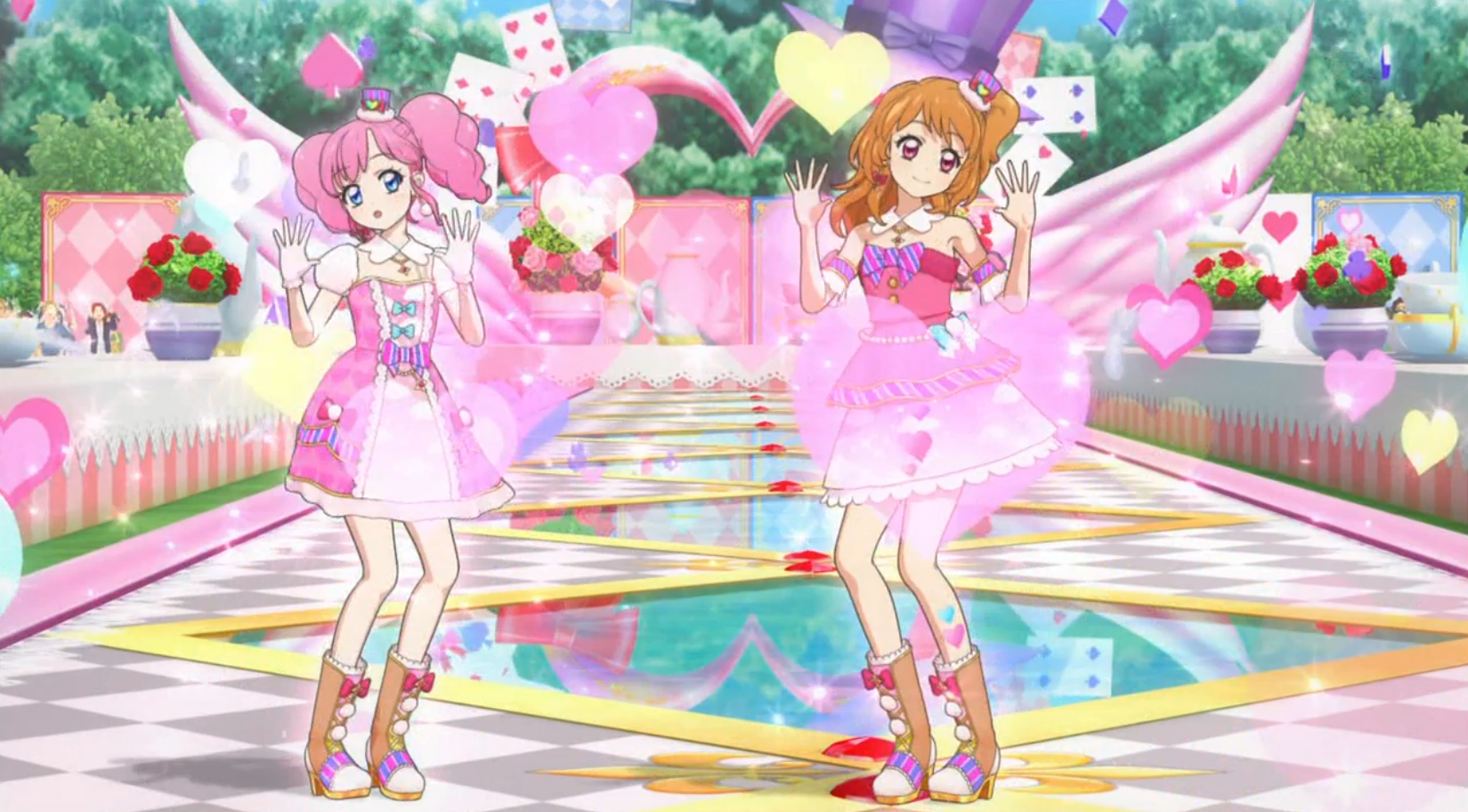 Dalam Episode 78, ketika tampil bersama grup stardust biru jatuh di sekitar mereka octahedrons magenta, kapur berwarna Warni permata mengambang di Mikuru's sisi dan mawar oranye dan kuning mengambang di sisi Mizuki's.